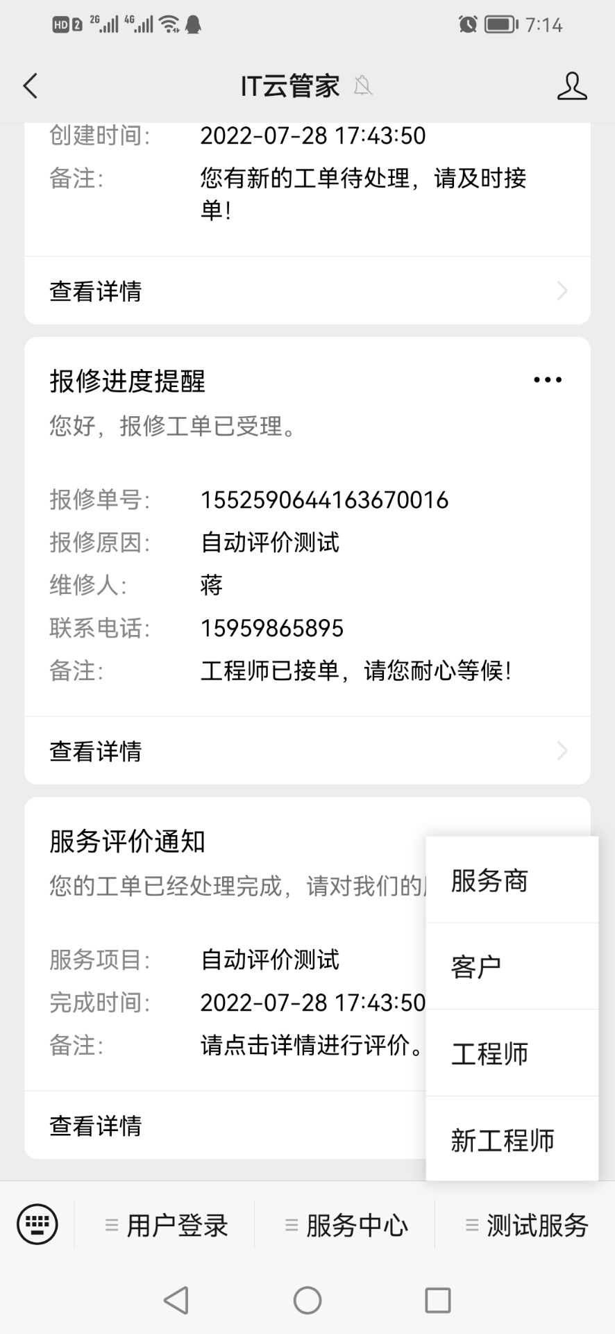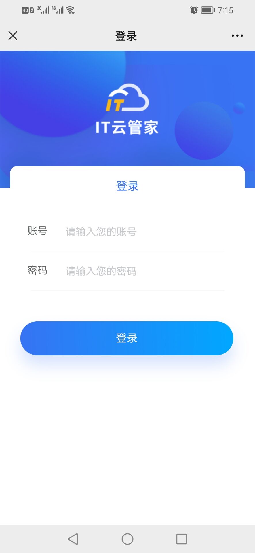 步骤1、打开IT云管家公众号,点击底部菜单登录,进入IT云管家登录界面。