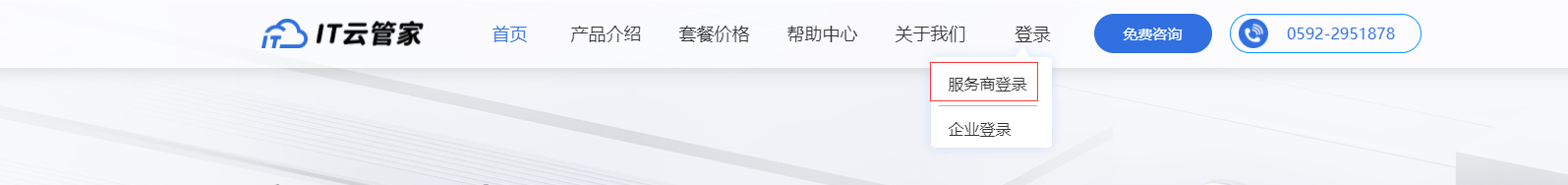 1.打开浏览器(如:IE,谷歌,火狐,360浏览器等),打开IT云管家官网:http://ityungj.com,点击登录,选择服务商登录。
